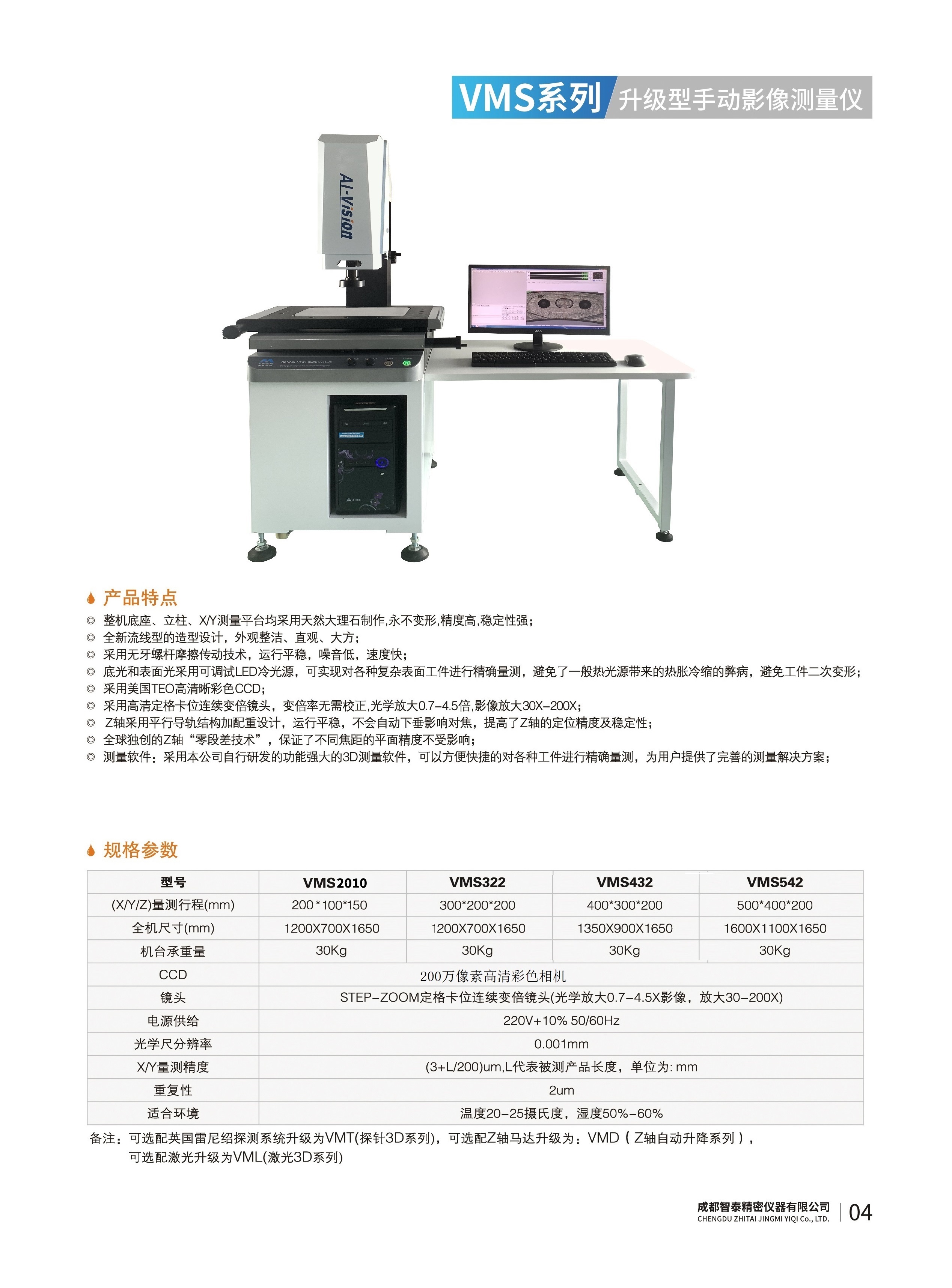 成都智泰精密儀器有限公司專注于精密測量儀器,人工智能,智能制造領(lǐng)域,專業(yè)從事智能視覺自動化檢測解決方案的貿(mào)易型企業(yè)。公司成立于2011年,位于天府之國成都,現(xiàn)有行業(yè)精英十余人,辦公倉儲面積200余平米。 公司主要產(chǎn)品為精密光學(xué)影像測量儀,精密輪廓形狀測量儀,精密機器人定位系統(tǒng),精密智能視覺尺寸檢測儀器,精密表面缺陷智能檢測設(shè)備,工業(yè)工程特種機器人。 公司憑借過硬的技術(shù)實力和產(chǎn)品方案,率先進入智能視覺自動化檢測領(lǐng)域,推廣以精密智能視覺自動化檢測為基礎(chǔ)的機器人自動化應(yīng)用,公司不斷整合上下游的資源,擁有巨大的全產(chǎn)業(yè)鏈優(yōu)勢。客戶群體覆蓋了我國精密制造業(yè)的多數(shù)領(lǐng)域,包括航空、航天、軍工、汽車、新能源、光伏、食品,精密電子、精密機械、模具、PCB、LCD、五金、塑膠、醫(yī)療、教育、計量及科研院所等行業(yè)。 公司創(chuàng)新的產(chǎn)品能滿足生產(chǎn)與制造行業(yè)客戶的要求,訓(xùn)練有素的工程師能及時提供多種技術(shù)服務(wù),如解...